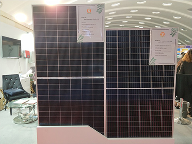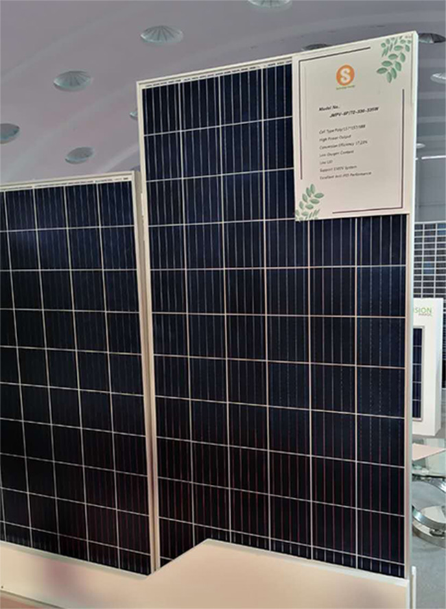 此次展會(huì),陽(yáng)光能源品牌展出三款組件,分別為單晶雙玻半片9BB-410W組件、單晶常規(guī)半片5BB-330W組件、多晶72片330W組件和多晶60片275W組件,其中,多晶275W和330W組件由于性價(jià)比高,在當(dāng)?shù)厮孟到y(tǒng)和農(nóng)業(yè)項(xiàng)目中應(yīng)用廣泛,引起熱銷(xiāo)浪潮。另外,單晶雙玻半片9BB-410W組件也受到很多訪客的關(guān)注和咨詢。