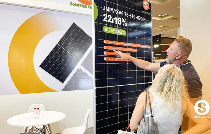 作為全球知名光伏組件制造商,陽光能源在本次大會上向來自全球的業(yè)界翹楚展示了我司的先進技術(shù)和創(chuàng)新產(chǎn)品。陽光能源3款Giga-P系列組件面向當?shù)卮笮偷孛骐娬镜葢?yīng)用場景,量產(chǎn)功率最高可達670W;此外,陽光能源還展示了1款 Giga-N系列78片雙玻組件產(chǎn)品,以更高效、更前沿的組件特性,俘獲大批觀眾駐足欣賞。展會現(xiàn)場,陽光能源還與當?shù)鼗锇楣餐接懥四戏枪夥a(chǎn)業(yè)發(fā)展新機遇。