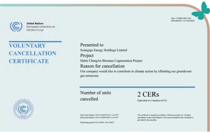 于報告期內(nèi),陽光能源成功實施了多項減碳措施,包括利用碳抵消來實現(xiàn)溫室氣體排放強(qiáng)度的降低。我們利用的碳抵消專案是聯(lián)合國清潔發(fā)展機(jī)制(CDM)的河北成安生物質(zhì)熱電聯(lián)產(chǎn)專案(專案編號:3797)。該專案產(chǎn)生的電力出售給河北省電網(wǎng),以替代燃煤發(fā)電廠的產(chǎn)能。此項目不僅減少了溫室氣體排放,還促進(jìn)了資源效率、環(huán)境保護(hù)和對當(dāng)?shù)厣鐓^(qū)的社會經(jīng)濟(jì)效益。通過此項目獲得的核證減排量(CERs)對于實現(xiàn)2022年在杭州舉行的第19屆亞洲運(yùn)動會和第4屆亞洲殘疾人運(yùn)動會的碳中和起到了關(guān)鍵作用。