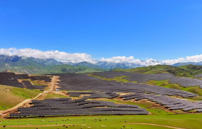 皚皚白雪覆蓋著尼勒克的山巒,在這片銀白之上,一抹閃亮的藍正悄然崛起。自2024年5月二期工程開工以來,項目面臨著邊征地、邊設計、邊采購、邊施工的復雜局面,管理難度極大。陽光能源深知項目時間緊、任務重,在供貨流程上全力以赴。公司依托成熟的供應鏈體系,精心組織生產,確保在短短5個月的時間里,光伏組件能夠按時、足額供應至項目現場,與項目整體施工進度完美契合。