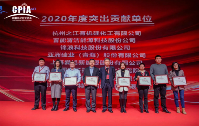 為感謝2020年度在協(xié)會各項會議活動、標準及戶用工作等方面,做出突出貢獻的會員單位,在2020年中國光伏行業(yè)年度大會期間,特授予天合光能股份有限公司、晶澳太陽能科技股份有限公司、晶科能源有限公司、陽光電源股份有限公司、浙江正泰新能源開發(fā)有限公司、隆基綠能科技股份有限公司、華為技術有限公司、錦州陽光能源有限公司、通威股份有限公司、杭州之江有機矽化工有限公司、晉能清潔能源科技股份公司、錦浪科技股份有限公司、亞洲矽業(yè)(青海)股份有限公司、上海愛旭新能源股份有限公司、蘇州賽伍應用技術股份有限公司、深圳古瑞瓦特新能源股份有限公司、中國電子技術標準化研究院17家單位“2020年度突出貢獻獎”。