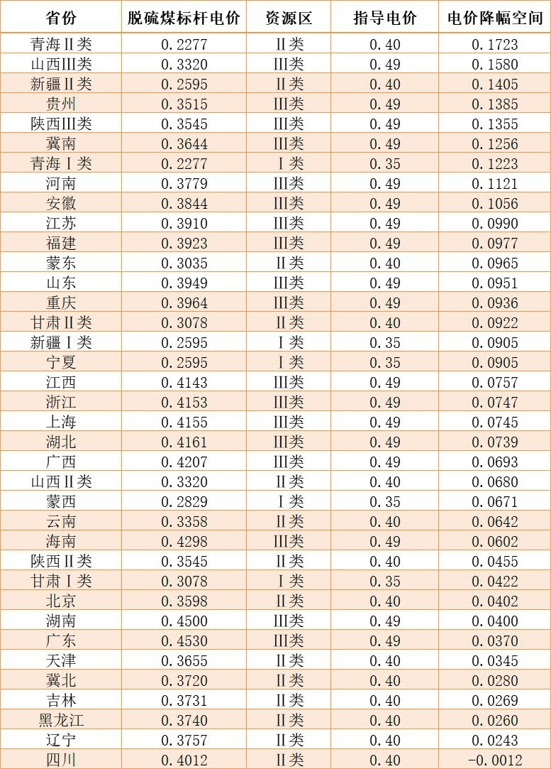 從電價(jià)降幅空間來看,青海、新疆二類、山西三類、貴州、陝西、冀南、河南、安徽等地降價(jià)幅度均可超過0.1元/千瓦時(shí),相對(duì)競(jìng)價(jià)優(yōu)勢(shì)更為明顯一些。但以四川、冀北、湖南、廣東以及東三省為代表的地區(qū),電價(jià)降幅空間僅有2-3分/千瓦時(shí)左右。具體數(shù)據(jù)見下表: