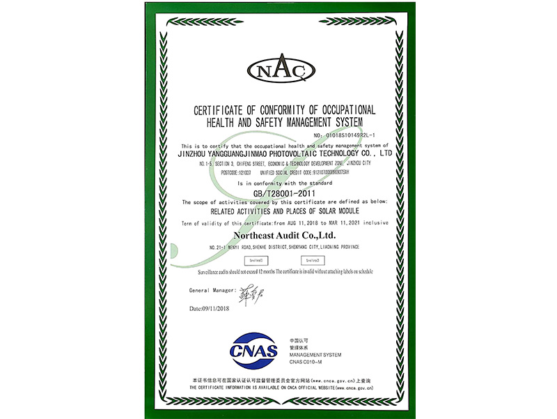 職業(yè)健康安全管理體系認證證書(英文)